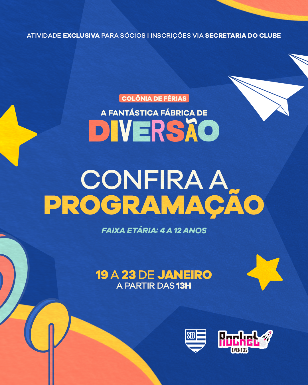 • Crianças sem restrição alimentar devem não trazer lanche extra, pois tudo será fornecido pelo clube.