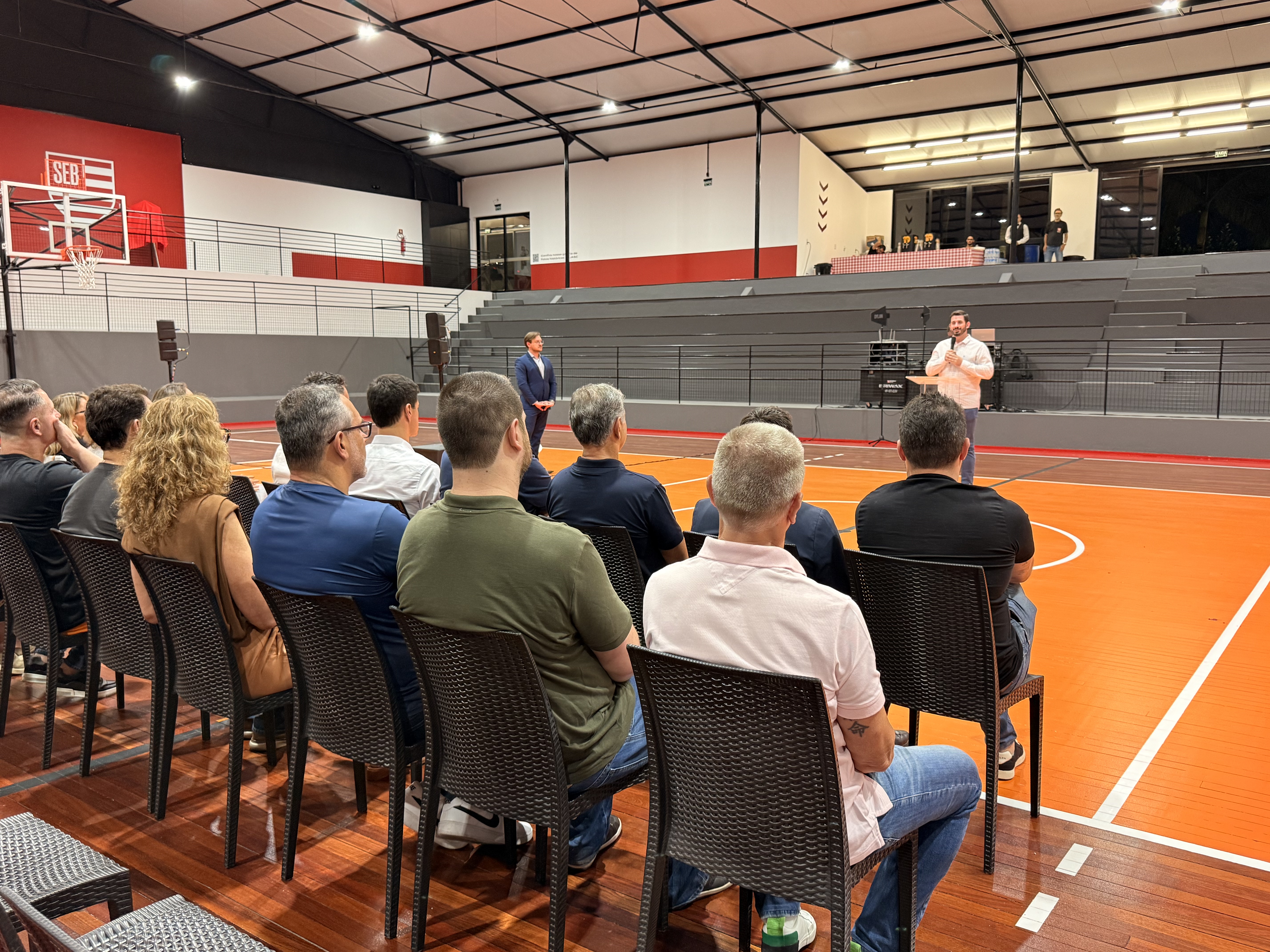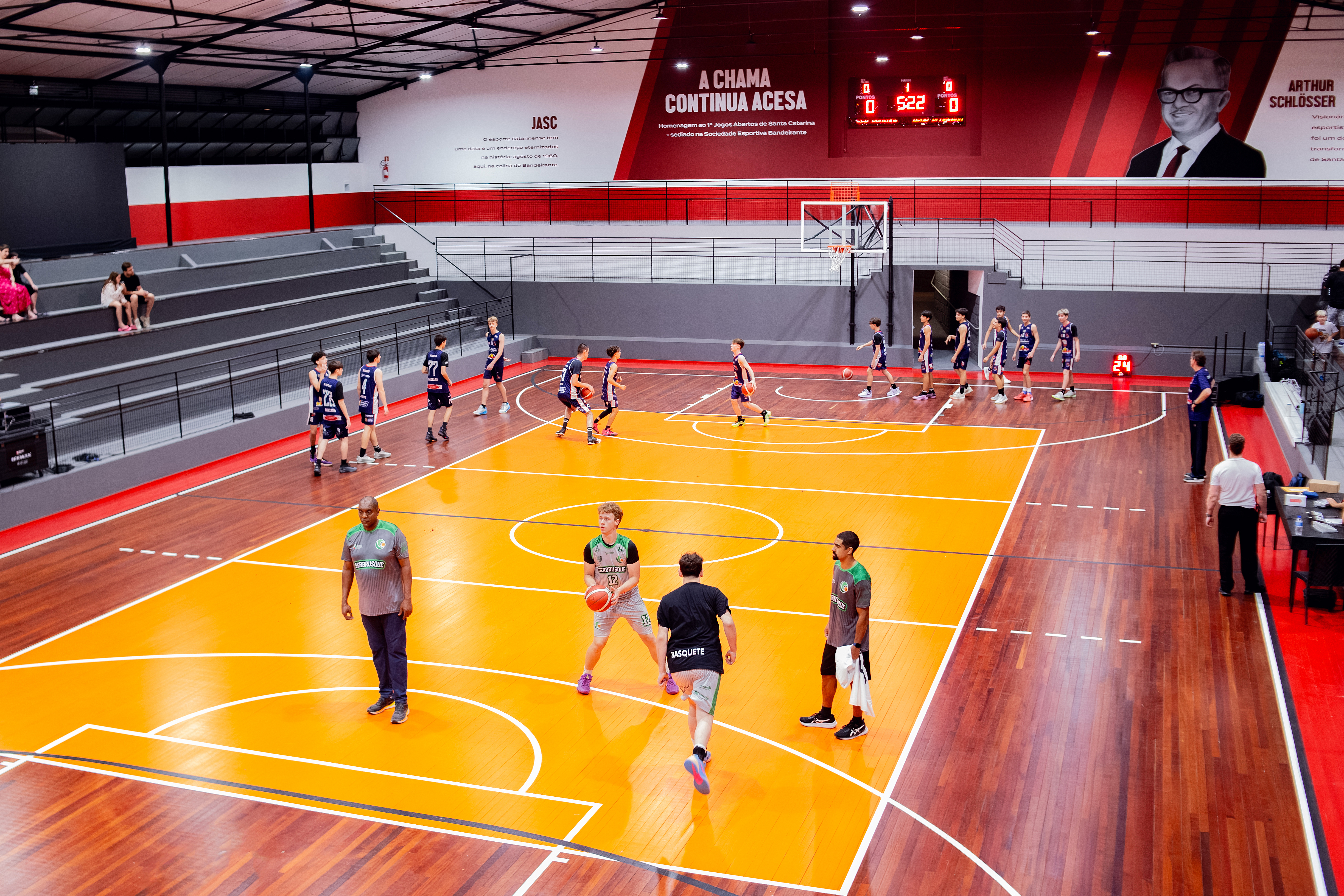 O presidente da Sociedade Esportiva Bandeirante, Marcelo Caetano, falou sobre o tamanho do desafio e o significado da revitalização dentro da história do Bandeirante. Ele destacou que a obra não apenas moderniza o espaço, mas também honra o papel do ginásio como berço dos JASC e símbolo do esporte catarinense.