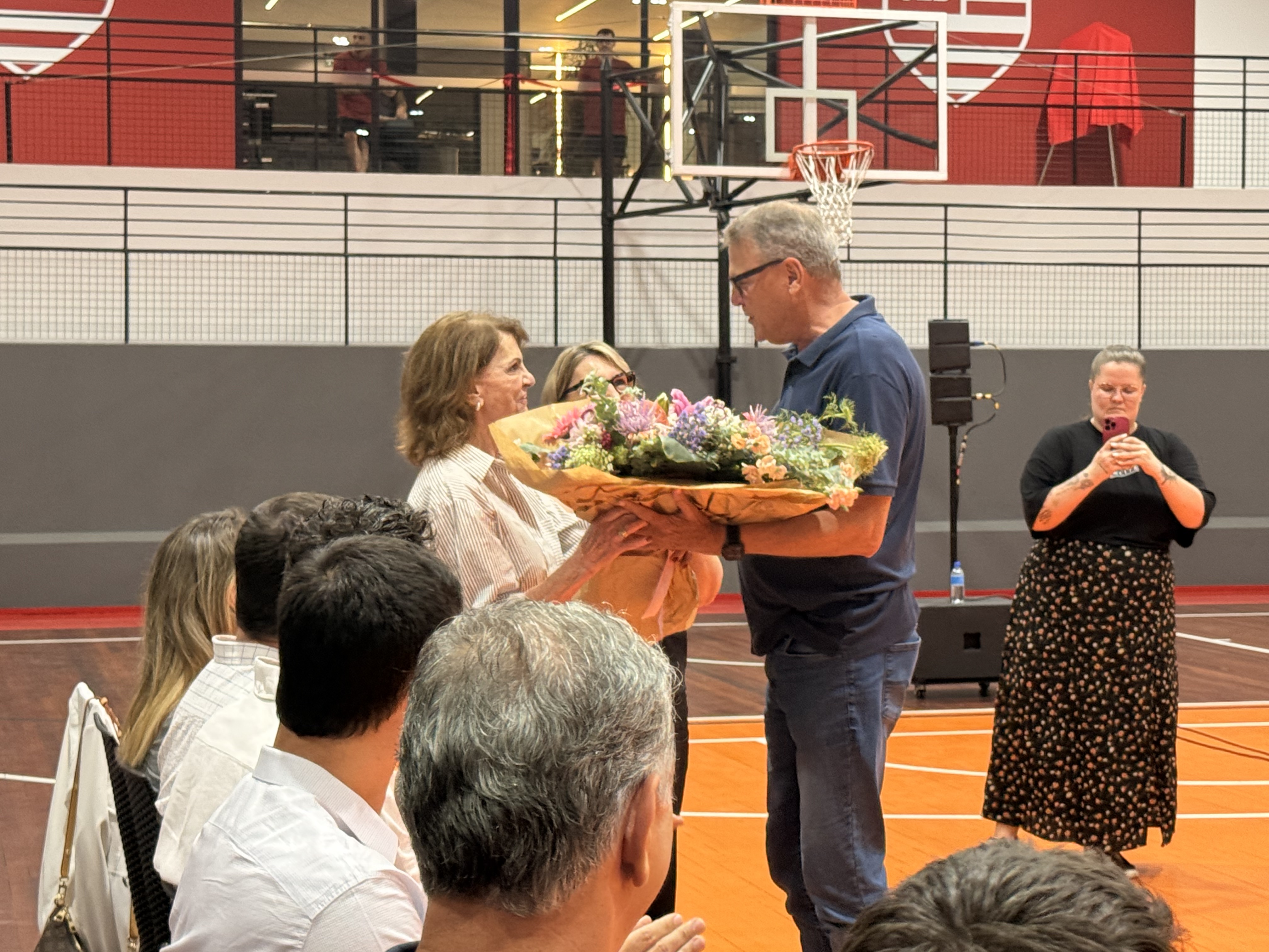 A noite também reservou um momento especial dedicado à memória de Arthur Schlösser, idealizador dos Jogos Abertos de Santa Catarina e figura diretamente ligada à história do ginásio. Sua filha, Elisa Regina S. Niebuhr, participou da cerimônia e se emocionou ao reencontrar o espaço onde o pai deixou parte de seu legado.