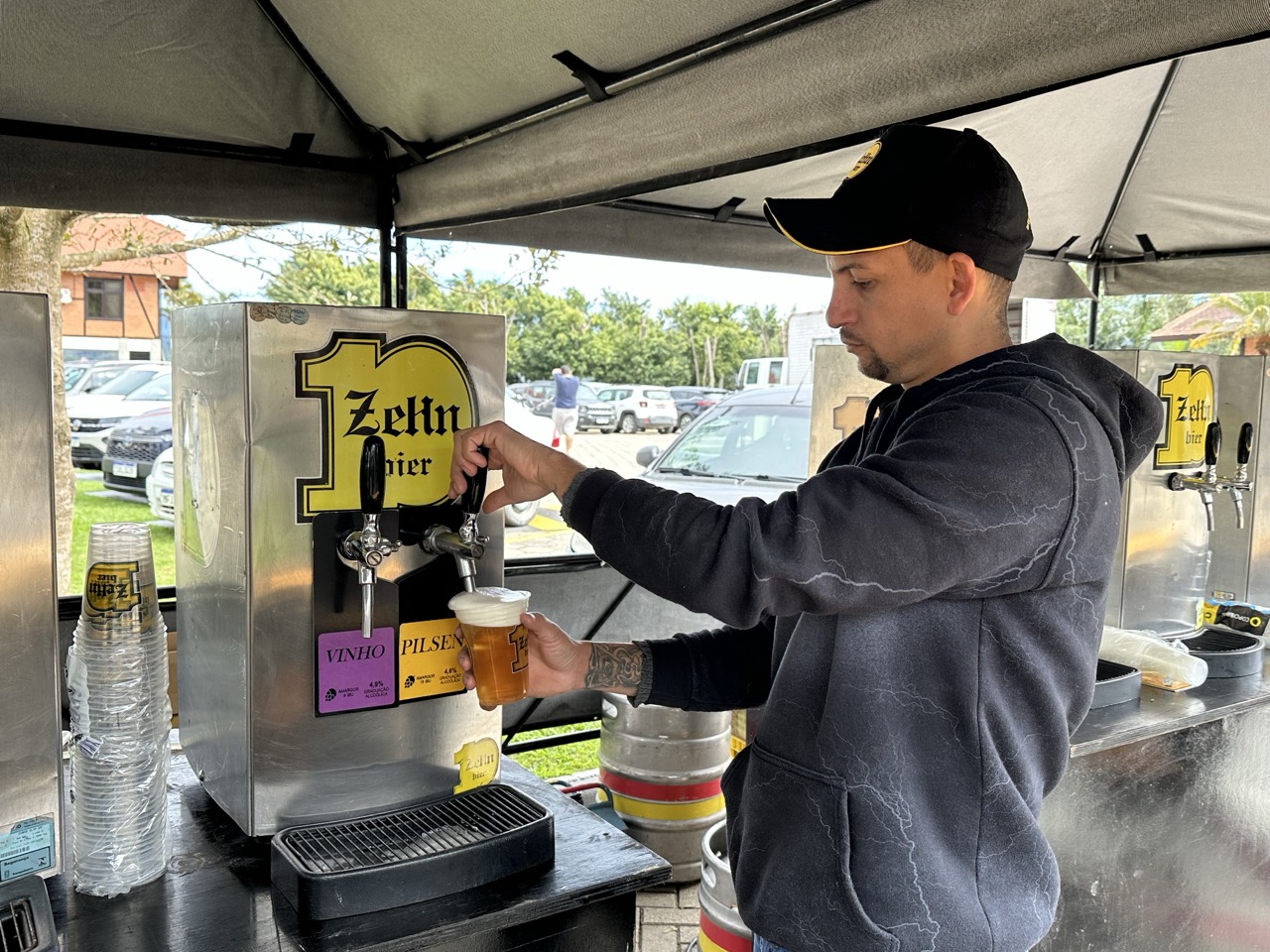 O bancário Jullius Martins dos Reis aproveitou o dia acompanhado pela esposa Aline Boettner dos Reis e participou do torneio com os filhos, Heitor, de quatro anos, e o pequeno Olavo, de apenas 1 ano e meio, que foi o batedor de pênalti mais novo do torneio.