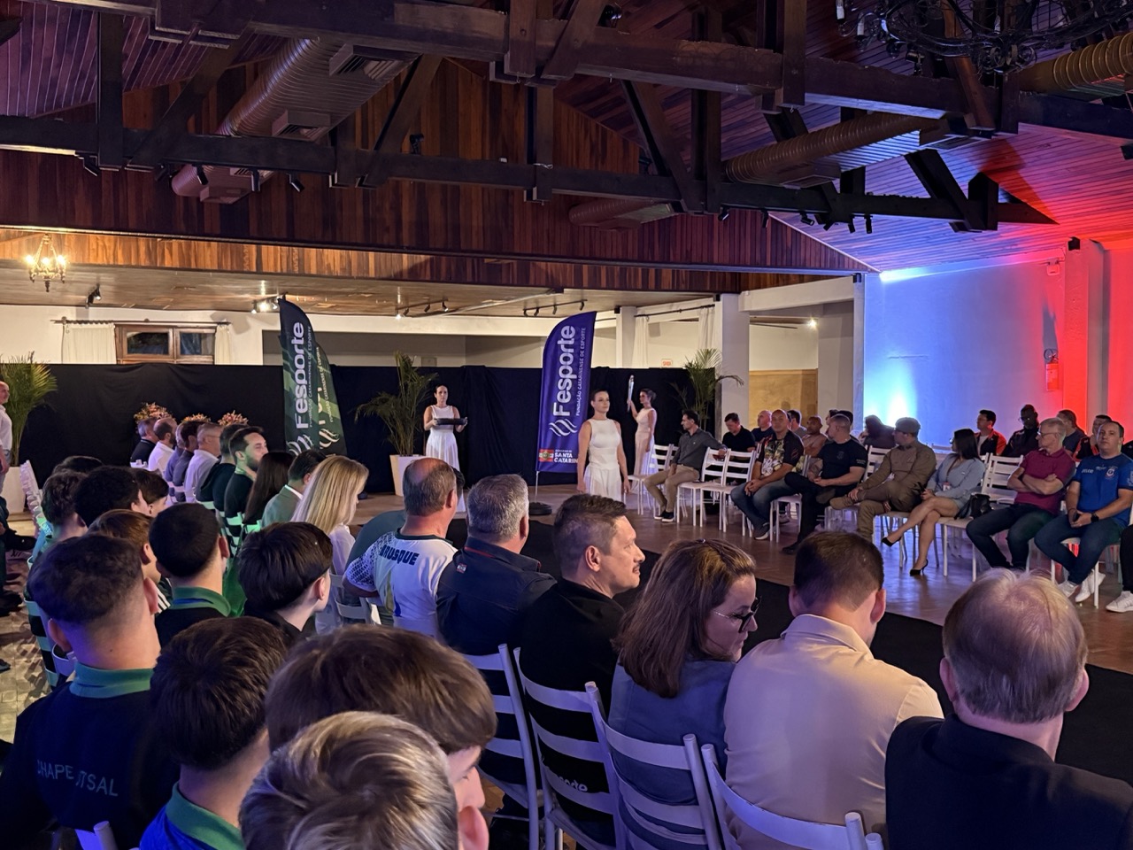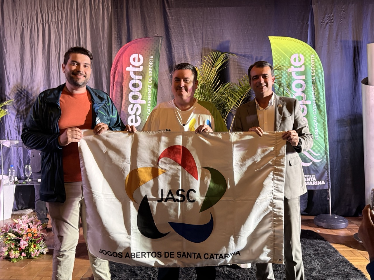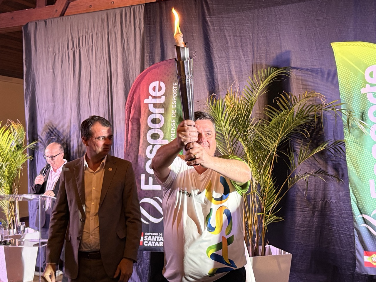 A chama simbólica dos Jogos Abertos de Santa Catarina (JASC) voltou a brilhar na noite desta quinta-feira, 6 de novembro, na Sociedade Esportiva Bandeirante, em Brusque, o berço da maior competição poliesportiva do Estado. O evento, que reuniu autoridades, atletas e convidados, marcou oficialmente o início da 64ª edição dos Jogos, que será realizada de 18 a 29 de novembro, em Chapecó.