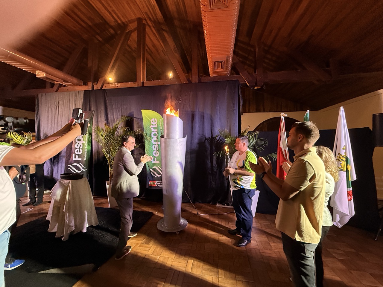 Fogo simbólico dos Jogos Abertos de Santa Catarina é aceso no Bandeirante